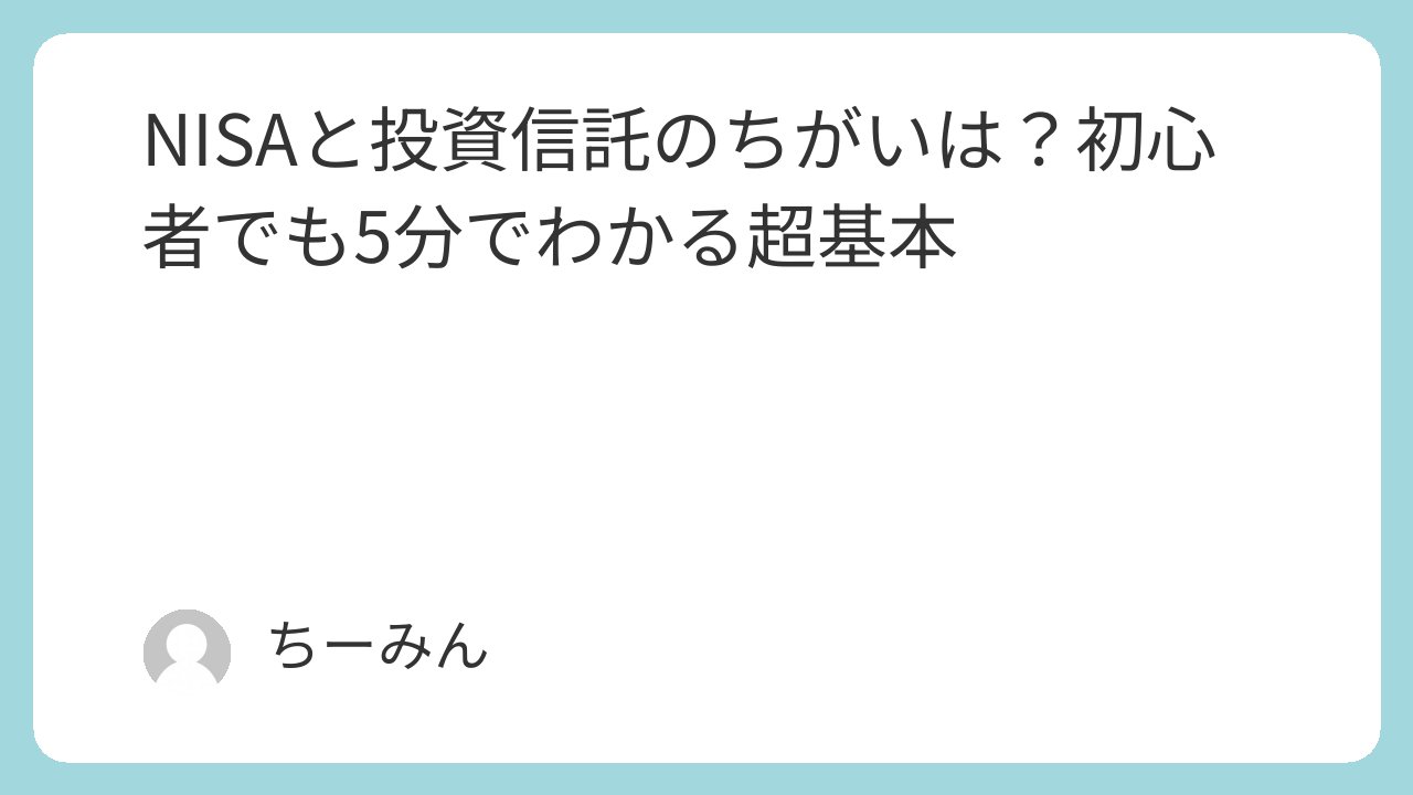 - ❌ NISAと投資信託はどっちがいい? → ⭕ 比べるものではない